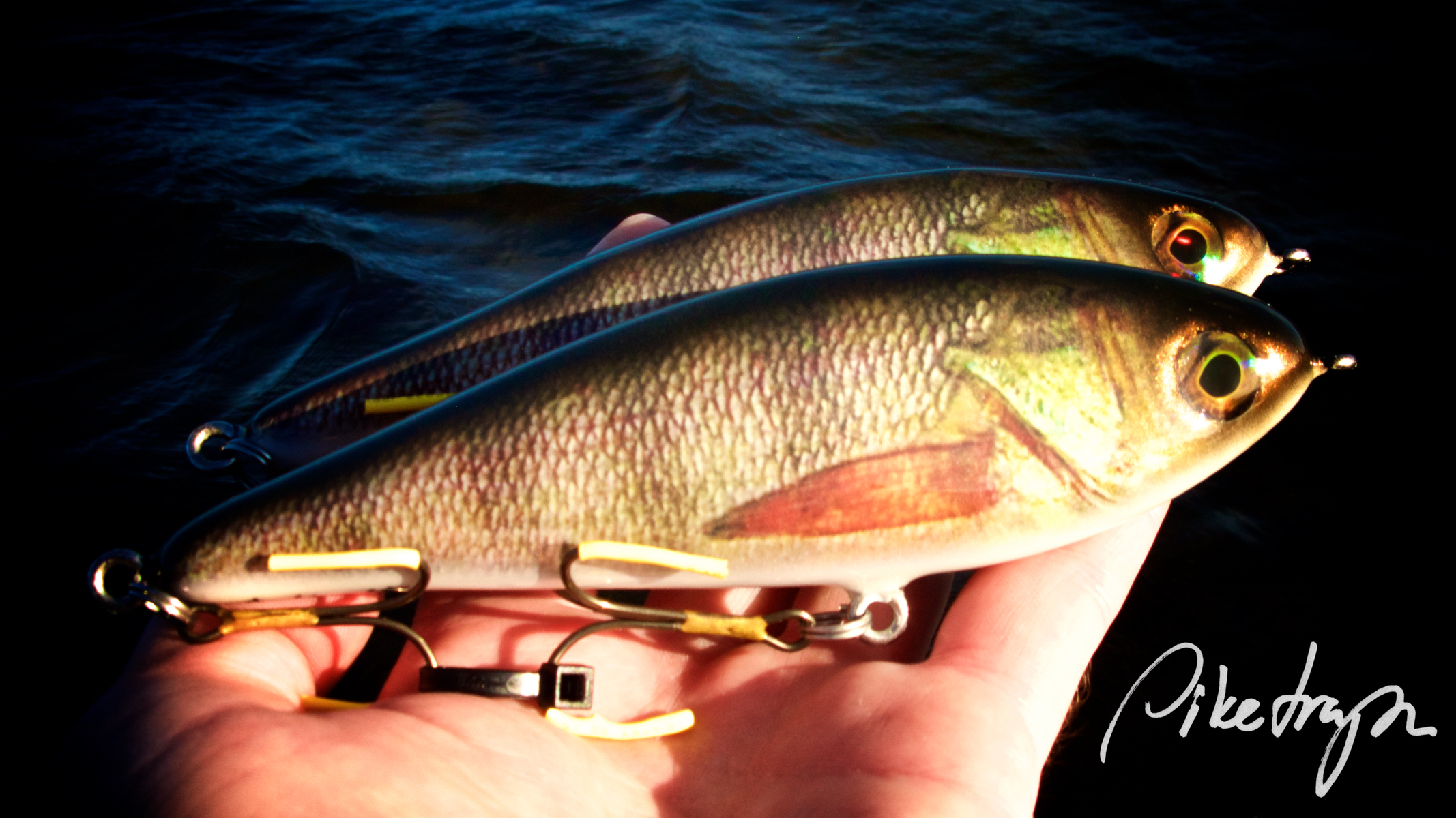 This one was in the same batch as the first generics, it has the same good properties and naturally suffer from very much the same bad ones. At 16 cm and about 55g it has the typical side to side action. Made out of 15mm oak it is a natural slow sink bait.